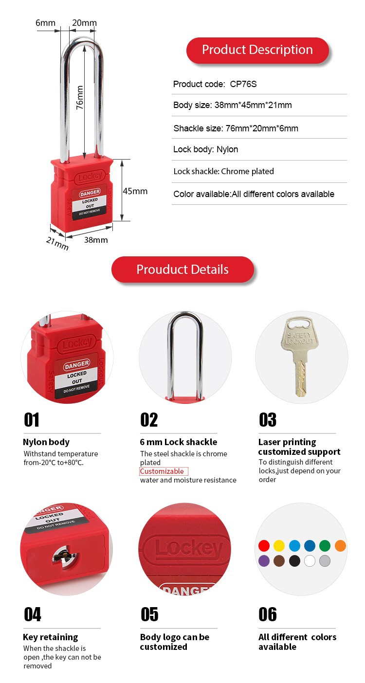 Hitre in dobre ponudbe, informirani svetovalci, ki vam bodo pomagali izbrati pravi izdelek, ki ustreza vsem vašim potrebam, kratek čas proizvodnje, odgovoren nadzor kakovosti in različne storitve za plačilo in pošiljanje za posebno zasnovo za Kitajsko Visokokakovostna varnost 76 mm dolga sponka Safety Loto Lockout Tagout Padlock, Naše podjetje je že zgradilo izkušeno, ustvarjalno in odgovorno skupino za ustvarjanje potrošnikov ob uporabi načela več zmag.